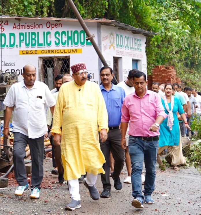 देहरादून। प्रदेश के लोक निर्माण एवं सिंचाई मंत्री सतपाल महाराज ने आज दूसरे दिन भी जनपद देहरादून के भारी वर्षा, भूस्खलन एवं बादल फटने से प्रभावित क्षेत्रों में हुए सड़कों, पुलों को हुए नुकसान और उसके बाद किये जा रहे मरम्मत कार्यों का स्थलीय निरीक्षण कर अधिकारियों आवश्यक दिशा-निर्देश दिए। प्रदेश के लोक निर्माण एवं सिंचाई मंत्री सतपाल महाराज ने आज दूसरे दिन गुरुवार को जनपद देहरादून के भारी वर्षा, भूस्खलन एवं बादल फटने से प्रभावित क्षेत्रों में हुए सड़कों, पुलों को हुए नुकसान और उसके बाद किये जा रहे मरम्मत कार्यों का स्थलीय निरीक्षण कर अधिकारियों को आवश्यक दिशा-निर्देश दिए। उन्होंने राष्ट्रीय राजमार्ग संख्या 07, उत्तरांचल यूनिवर्सिटी, झाझरा सेतु के समीप और किमाड़ी-मसूरी रोड़ गजियावाला में क्षतिग्रस्त सिंचाई विभाग की नहर का स्थलीय निरीक्षण किया।