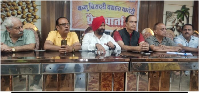 देहरादून – बन्नू बिरादरी दशहरा कमेटी द्वारा आज त्यागी रोड स्थित एक होटल पर आगामी 2 अक्टूबर दिन वीरवार को दशहरे के उपलक्ष में प्रेस वार्ता रखी गई कार्यक्रम मैं बन्नू बिरादरी दशहरा कमेटी प्रधान संतोख सिंह नागपाल द्वारा बताया गया कि गत वर्ष की भांति इस वर्ष में बिरादरी द्वारा बड़े ही हर्ष उल्लास के साथ 78वा दशहरा महापर्व मनाया जा रहा है इसके अंतर्गत पुतलो में रावण 121 फुट, मेघनाथ, कुंभकरण 70-75 फुट व एशिया की सबसे बड़ी लंका 45 x 45 फुट की बनाई जा रही है जिसके आगे दो पुतले खड़े किये जाएंगे एवं भव्य लाइटिंग का भी भव्य नजारा देखने लायक होगा ।शोभायात्रा 2 अक्टूबर दिन बृहस्पतिवार को दिन 2:00 बजे कालिका मंदिर स्थित श्री गोपीनाथ मंदिर से प्रारंभ होगी वहां से कालिका भवन होते हुए अंसारी मार्ग, पलटन बाजार, घंटाघर , एशलेहाल गांधी पार्क से होते हुए परेड ग्राउंड में पहुंचेगी वहां पर 5:00 बजे लंका दहन, मेघनाथ ,कुंभकरण एवं 6:05 पर रावण दहन का कार्यक्रम होगा इसके अगले दिन 3 अक्टूबर 2025 दिन शुक्रवार को भरत- मिलाप कार्यक्रम भी परेड ग्राउंड में सायं 4:00 बजे होगा। प्रेस वार्ता में मुख्य रूप से बन्नू बिरादरी के अध्यक्ष सरदार संतोख सिंह नागपाल,हरीश डोरा, अमित कपूर ,प्रेम भाटिया, संजय चांदना ,संजीव विरमानी, अमित भाटिया, रमेश खनिजो, आनंद मुनियाल ,मनोज साहनी, दीपक ग्रोवर, ऋषि, चंदन दुआ, कृष्णा, अभिषेक वाधवा, एवं बिरादरी के काफी सदस्य उपस्थित थे।