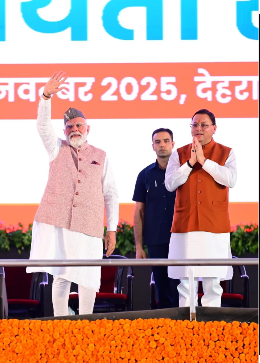 मुख्यमंत्री श्री धामी ने कहा कि केदारनाथ त्रासदी, सिलक्यारा टनल हादसा, जोशीमठ भूधंसाव या अन्य प्राकृतिक आपदाओं के समय प्रधानमंत्री जी ने संवेदनशीलता के साथ उत्तराखंड की जनता का साथ दिया है। प्रधानमंत्री जी के इसी स्नेहपूर्ण सहयोग और मार्गदर्शन से उत्तराखंड कठिनाइयों से उबरकर एक नई शक्ति, नए संकल्प और नई ऊर्जा के साथ आज आगे आगे बढ़ रहा है। उन्होंने कहा कि प्रदेश सरकार विकास के साथ-साथ राज्य की सांस्कृतिक अस्मिता, पारंपरिक पहचान और डेमोग्राफिक संतुलन को संरक्षित रखने के लिए भी कार्य कर रही है। इसी क्रम में समान नागरिक संहिता, नकल विरोधी कानून, धर्मांतरण विरोधी कानून, दंगारोधी कानून, मदरसा बोर्ड की समाप्ति जैसे कार्यों से उत्तराखंड एक समरस समाज के निर्माण की दिशा में अग्रसर है। मुख्यमंत्री ने अपने संबोधन की शुरुआत देश की रक्षा के लिए अपना सर्वोच्च बलिदान देने वाले हमारे वीर जवानों के साथ ही उत्तराखंड राज्य आंदोलन के शहीदों और आंदोलनकारियों को नमन करते हुए, प्रदेशवासियों को राज्य स्थापना दिवस की बधाई देने के साथ दी। इस मौके पर राज्यपाल ले. ज. (से.नि.) गुरमीत सिंह, केंद्रीय राज्य मंत्री अजय टम्टा, विधानसभा अध्यक्ष ऋतु खंडूड़ी, राज्यसभा सांसद भाजपा प्रदेश अध्यक्ष महेंद्र भट्ट सहित गणमान्य लोग उपस्थित हुए।