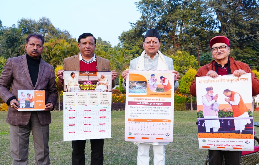 देहरादून – मुख्यमंत्री पुष्कर सिंह धामी ने मुख्यमंत्री आवास में सूचना विभाग, उत्तराखंड सरकार द्वारा प्रकाशित नववर्ष 2026 के आधिकारिक कैलेंडर का विधिवत विमोचन किया। इस अवसर पर मुख्यमंत्री ने कैलेंडर के आकर्षक स्वरूप, उत्कृष्ट मुद्रण गुणवत्ता एवं विषयवस्तु की सराहना करते हुए कहा कि यह कैलेंडर राज्य सरकार की योजनाओं, उपलब्धियों तथा जनकल्याणकारी नीतियों के साथ-साथ सरकार द्वारा लिए गए ऐतिहासिक एवं दूरदर्शी निर्णयों को प्रभावी ढंग से जनमानस तक पहुँचाने का सशक्त माध्यम है।