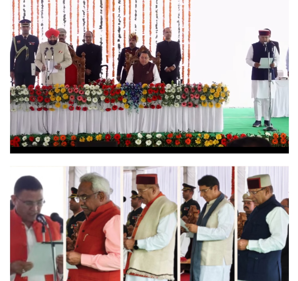 धामी कैबिनेट का विस्तार 5 विधायकों ने ली मंत्री पद की शपथ।