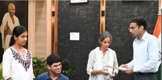 ग्राम्य विकास मंत्री गणेश से भेंट करते दिव्य ज्योति स्वयं सहायता...