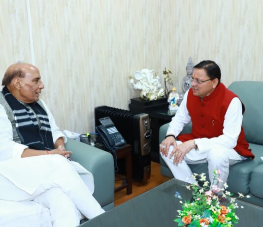 मुख्यमंत्री धामी ने नई दिल्ली में केंद्रीय रक्षा मंत्री राजनाथ सिंह से शिष्टाचार भेंट की।