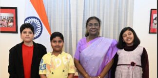अदम्य , आदविक एवं वेदिका ने की राष्ट्रपति से भेंट